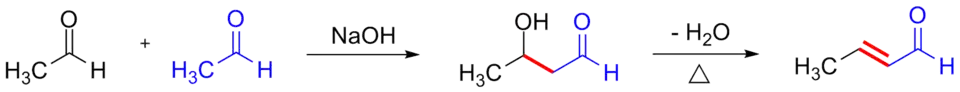 A reação de condensação aldólica ocorre em três passos mostrados no seguinte exemplo: