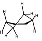 A presença de ligações duplas gera mudanças do nas propriedades dos ciclos. Quando centros sp2 são incorporados em anéis de seis membros a barreira de energia para a inversão no anel, é reduzida para 7,7 kcal / mol no ciclo-hexeno (considerando que para o cicloexano é 10,3 kcal/mol) e 4,9 kcal/mol em cicloexanona. A conformação de cicloexeno é descrito como meia-cadeira. Parâmetros estruturais determinados por difração de elétrons e espectroscopia de microondas revelam que a ligação dupla pode ser acomodada no anel sem distorção grave. O comprimento da ligação C(1)-C(2) é a 1,335 Å, e o ângulo de ligação C(1)-C(2)-C(3) é de 123o. Os substituintes em C(3) e C(6) são denominados como pseudo-axial e pseudo-equatorial.[17]