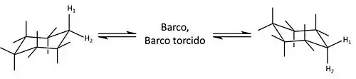 O cis-1,4-di-tert-butilcicloexano tem um grupo axial terc-butil na conformação de cadeira, e a conversão à conformação de bote torcido ubica a ambos grupos nas posições equatoriais que são mais favoráveis. Como resultado, a conformação de bote torcido é mais estável por 0,47 kcal/mol (1,96 kJ/mol) a 125K, de acordo com medições por espectroscopia RMN.