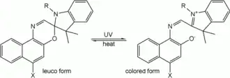 O termocromismo (mudança de cor com a temperatura) ser obtido com corantes leuco e ser utilizado em roupas ou em sistemas termográficos, nos quais são utilizados corantes leuco de fenazina estabilizados.[1]