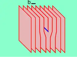 Em ciência dos materiais, um deslocamento, deslocação ou discordância é um defeito ou irregularidade na estrutura cristalina. A presença de deslocamentos influencia fortemente muitas das propriedades dos materiais. A teoria foi originalmente desenvolvida por Vito Volterra em 1905. Alguns tipos de deslocamentos podem ser visualizados como sendo causados pelo término de um plano de átomos no meio de um cristal. Nesse caso, os planos não são retos, mas sim dobrados em torno da borda do plano em terminação de maneira que a estrutura de cristal está perfeitamente ordenada em ambos os lados. A analogia com uma pilha de papel é oportuna: se uma meia folha de papel é inserida em uma pilha de papel, o defeito na pilha só é percebido na beira da metade da folha.