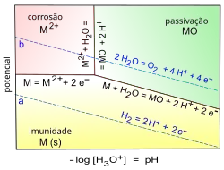 Embora sejam passíveis de uma aplicação genérica em todos os ramos da química inorgânica e da química analítica, os diagramas de Pourbaix tem tido, até o momento, uma aplicação mais ampla em estudos ligados à geoquímica ou especialmente, à corrosão. Neste contexto, o diagrama de Pourbaix pode ser apresentado de forma simplificada indicando regiões de imunidade, corrosão e passividade, prestando-se assim à compreensão do comportamento de um metal determinado em um ambiente específico. Imunidade significa que o metal não é atacado, enquanto corrosão supõe um ataque generalizado. A passivação ocorre quando o metal forma um recobrimento estável de óxido ou outro sal em sua superfície, sendo um bom exemplo a relativa estabilidade do alumínio protegido pela formação uma superfície de alumina quando exposto ao ar.