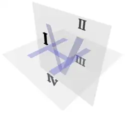 Na geometria descritiva mongeana, o espaço é dividido por um tetraedro (quatro diedros) ou quadrantes, através de planos bi-ortogonais.[2]