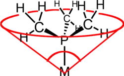 Os ângulos do cone do ligante são medidas do tamanho dos ligantes na química da coordenação. É definido como o ângulo sólido formado com o metal no vértice e os átomos de hidrogênio no perímetro do cone (veja a figura).[3]