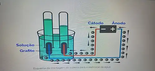 ![]() Geração de O2 e H2 através da eletrólise da água. | |