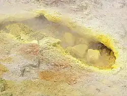 Acúmulo de enxofre numa fumarola do Vulcão Vulcano, na Sicília