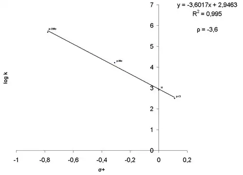 Analogamente, existe uma correlação para catálise básica que obedece à mesma equação porem utilizando .