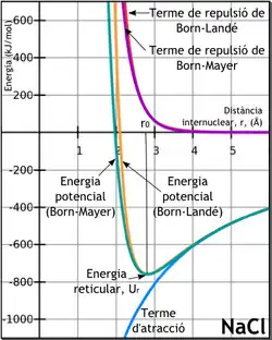 A energia reticular () corresponde ao valor mínimo dessa energia. Pode-se obter esse valor igualando a zero a derivada da expressão em função de r: