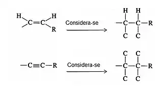 Quando a estrutura apresente ligações duplas ou triplas, estas são tratadas como ligações simples e os átomos são duplicados.[4]