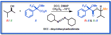 Agente de derivatização utilizado para álcools e aminas, em que a reação forma diasteroisomeros com sinais de RMN diferentes entre si.