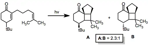 Outro exemplo seria na cicloação 2+2 na qual se podem produzir também diferentes produtos diastereoisômeros. Concretamente na seguinte reação pode-se ver que a reação produz estereosseletivamente em una proporção de 2,3/1 o isômero A:[2]
