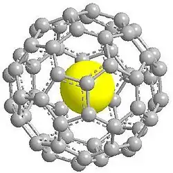 Outra particularidade dos fulerenos decorre da sua forma em gaiola. Quando foram descobertos, especulou-se acerca da possibilidade de preparar fulerenos contendo átomos e moléculas no seu interior dando origem a outras nanoestruturas com propriedades químicas e físicas diferentes das simples "gaiolas vazias". Alguns anos depois, foram descobertos fulerenos contendo átomos de metais, gases nobres e outros em seu interior. Como exemplo, os metalofulerenos consistem em fulerenos contendo um átomo de metal encapsulado no interior de sua estrutura. Normalmente, os metalofulerenos são estáveis em condições ambientes, mesmo quando a estrutura do fulereno vazia não é estável ou quando o aglomerado metálico não é capaz de ser formado fora do fulereno. A estrutura eletrônica dos metalofulerenos é bem diferente quando comparada com o correspondente vazio e muitos metalofulerenos passam a exibir propriedades magnéticas características, que podem proporcionar importantes aplicações na área biomédica e de nanomateriais. Ainda como exemplo, devido às suas características, o derivado Gd@C60[(C(COOH)2]10 (o símbolo @ serve para mostrar que o átomo está incluído na parte interna do fulereno), é cotado como um bom agente de contraste em exames de ressonância magnética nuclear.