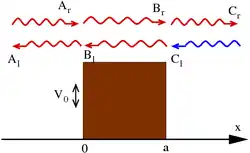 Uma das características mais proeminentes da mecânica ondulatória é a possibilidade de uma partícula atingir um local com um potencial de força proibitivo (na mecânica clássica). Um modelo comum é a "barreira de potencial", o caso unidimensional tem o potencial e as soluções de estado estacionário para a equação de onda têm a forma (para algumas constantes k, κ)