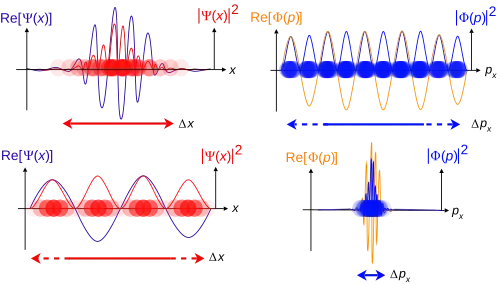 Da mesma forma, usando autofunções de posição, As funções de onda do espaço de posição e do espaço de momento são, portanto, transformadas de Fourier uma da outra.[30] Elas são duas representações do mesmo estado; contendo as mesmas informações, e qualquer uma delas é suficiente para calcular qualquer propriedade da partícula.