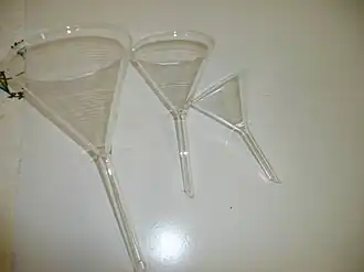 Funil de haste longa é utilizado na transferência de líquidos e no processo de filtração com retenção de partículas sólidas. [1]