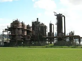 Gas Works Park em Seattle, onde é preservada a maioria do equipamento que foi usado para produzir gás de cidade, a única destas instalações que ainda existe nos Estados Unidos da América.