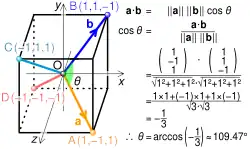 - ↑ «Angle Between 2 Legs of a Tetrahedron». Maze5.net