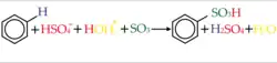 O SO3 formado no equilíbrio atua como eletrófilo na reação, por isso a reação ocorre mais rapidamente em ácido sulfúrico fumegante (ácido sulfúrico com uma concentração maior de SO3) (SOLOMONS e FRYHLE, 2001).