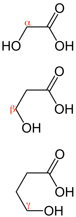 Um hidroxiácido é um composto orgânico que contém tanto uma hidroxila quanto um grupo carboxila[1]. Conforme o carbono com a hidroxila se afasta do carbono da carboxila, temos os alfa-hidroxiácidos, beta-hidroxiácidos, gama-hidroxiácidos, etc.