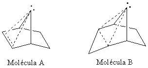 Uma estrutura homoaromática em que se dá uma delocalização cíclica envolvendo 6 elétrons π, é mais condizente com estes fatos. Assim, uma corrente diamagnética induzida surge no anel quando o cátion é submetido a um campo magnético, resultando na ampla diferença de deslocamento químico entre os prótons endo e exo no carbono C8.