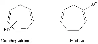 Os isômeros de cicloheptatrienóis reagem de forma bem diferente frente a eletrófilos, e o enolato, derivado de um desses trienos, tem uma barreira de ativação muito menor para interação com eletrófilos fortes, do que tem o íon fenóxido. Lew e Capon interpretaram esses resultados como um indicativo da falta de qualquer estabilização homoaromática significante em cicloheptatrienos.