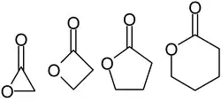 Uma lactona é um éster cíclico da química orgânica.[1] É o produto de condensação de um grupo funcional álcool e um grupo ácido carboxílico na mesma molécula (um hidroxiácido). As mais estáveis estruturas para lactonas são lactonas de 5 membros (gama-lactonas) e lactonas 6 membros (delta-lactonas), por causa da mínima tensão na estrutura dos compostos. Gama-lactonas são tão estáveis que, em presença de ácidos diluídos à temperatura ambiente, ácidos 4-hidróxi (R-CH(OH)-(CH2)2-COOH) imediatamente passam por esterificação e ciclização espontâneas a lactonas. Beta-lactones existem, mas podem ser produzidas apenas por métodos especiais.