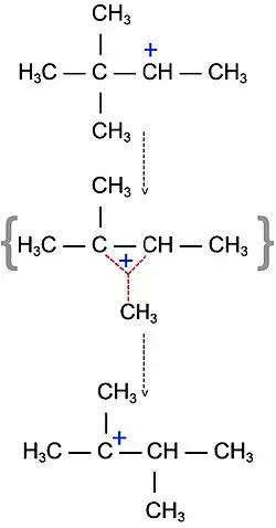 Rearranjos de carbocátions ocorrem através da transição de estado de ligações três centros. Devido às estruturas das ligações três centros possuírem quase a mesma energia que os carbocátions, praticamente não há energia de ativação para esses rearranjos, o que faz com que eles ocorram a taxas extraordinariamente altas.