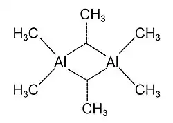 Representação de linha bifurcada da ligação 3c-2e no dímero de trimetil alumínio.