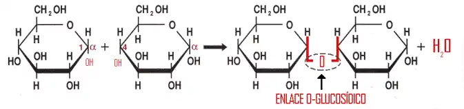 Especificamente, o que ocorre é combinação da hidroxila de um carbono anomérico (Carbono ligado ao oxigênio central e a uma hidroxila livre) de um monossacarídeo ( grupo hemiacetal) com a hidroxila de um álcool ou com a hidroxila de qualquer carbono de outro monossacarídeo, produzindo água. As valências livres de ambas as moléculas se unem produzindo a ligação glicosídica (-O-).