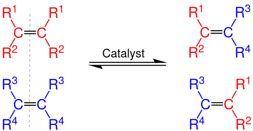 Metátese de olefina ou transalquilidenação é uma reação orgânica que implica redistribuição de fragmentos de alcenos (olefinas) pela cisão de ligações duplas carbono-carbono.[1] Os catalisadores para esta reação evoluíram rapidamente nas últimas décadas. Devido à relativa simplicidade da metátese de olefinas, muitas vezes cria subprodutos menos indesejados e resíduos perigosos do que reações orgânicas alternativas. Por sua elucidação do mecanismo de reação e sua descoberta de uma variedade de catalisadores altamente eficientes e seletivos, Yves Chauvin, Robert H. Grubbs, e Richard R. Schrock foram coletivamente agraciados com o Prêmio Nobel de Química de 2005.[2]