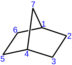 Uma molécula bicíclica (bi = dois, ciclo = anel) é uma molécula que apresenta dois anéis ligados. Podem ser referidas também como compostos bicíclicos.[1] Estruturas moleculares bicíclicas ocorrem amplamente, por exemplo, em muitas moléculas biologicamente importantes como α-tujeno e cânfora. Um composto bicíclico pode ser carbocíclico (todos os seus átomos no anel são átomos de carbono), ou heterocíclico (os átomos do anel consistem de ao menos dois tipos de átomos), como DABCO.[2] Além disso, os dois anéis podem tanto ser alifáticos (e.g. decalina e norbornano), como podem ser aromáticos (e.g. naftaleno), ou uma combinação de alifático e atromático (e.g. tetralina).