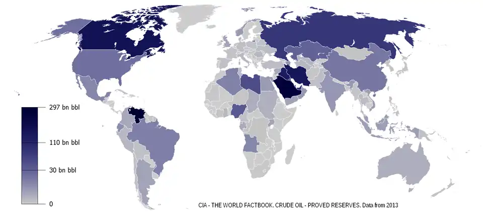 - ↑ Vanessa Barbosa (15 de agosto de 2012). «Os 15 países com as maiores reservas de petróleo do mundo». exame.com.br. Consultado em 1 de outubro de 2012