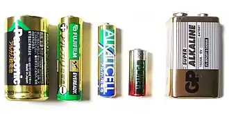 A pilha alcalina é um tipo de fonte portátil de energia. Ela recebe este nome porque são feitas a partir de bases, e possuem d.d.p de 1,5 V e não são recarregáveis. Indicada para equipamentos que requerem descargas de energia rápidas e fortes, como câmeras digitais, lanternas,entre outros etc.