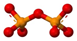 O ânion pirofosfato tem uma estrutura P2O74−, e é um ácido anidro do fosfato. É instável em solução aquosa e se hidrolisa rapidamente formando fosfato inorgânico: