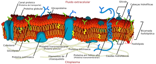 Cada célula é envolvida por uma membrana plasmática, que tem a estrutura de uma bicamada lipídica com muitos tipos de moléculas incorporadas nela. Por ser constituída de moléculas lipídicas, a membrana plasmática possui intrinsecamente uma alta resistividade elétrica, ou seja, uma baixa permeabilidade intrínseca a íons. No entanto, algumas das moléculas incorporadas na membrana são capazes de transportar ativamente íons de um lado da membrana para o outro ou fornecer canais através dos quais eles podem se mover.[5]