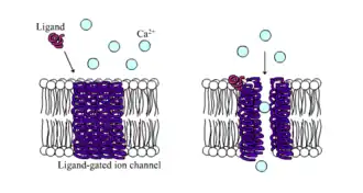 Os canais iônicos podem ser classificados pela forma como respondem ao seu ambiente.[13] Por exemplo, os canais iônicos envolvidos no potencial de ação são canais sensíveis à voltagem; eles abrem e fecham em resposta à voltagem através da membrana. Canais controlados por ligantes formam outra classe importante; esses canais iônicos abrem e fecham em resposta à ligação de uma molécula de ligante, como um neurotransmissor. Outros canais iônicos abrem e fecham com forças mecânicas. Ainda outros canais iônicos - como os dos neurônios sensoriais - abrem e fecham em resposta a outros estímulos, como luz, temperatura ou pressão.