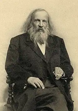 Dmitri Mendeleiev (1834-1907) criador da primeira versão da tabela periódica. |