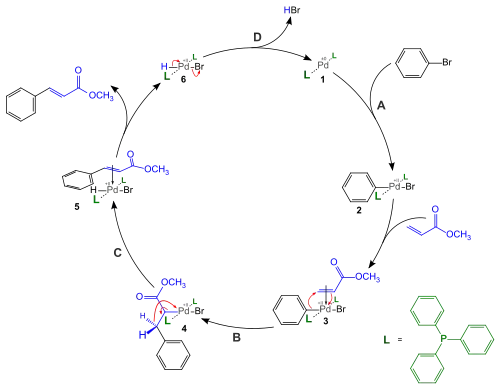 Na Reação de Heck uma ligação nova é fabricada entre 2 átomos de carbono sp2, um pertencente a olefina e outro a arila conectada ao halogénio. Pode ser também definida como uma olefinação direta de um haleto de arila, na qual o halogênio é substituído pelo grupo de carbono insaturado (alceno).
