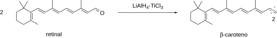 - 1 2 John E. McMurry; Michael P. Fleming (1974). «New method for the reductive coupling of carbonyls to olefins. Synthesis of β-carotene». J. Am. Chem. Soc. 96 (14): 4708–4709. PMID 4850242. doi:10.1021/ja00821a076