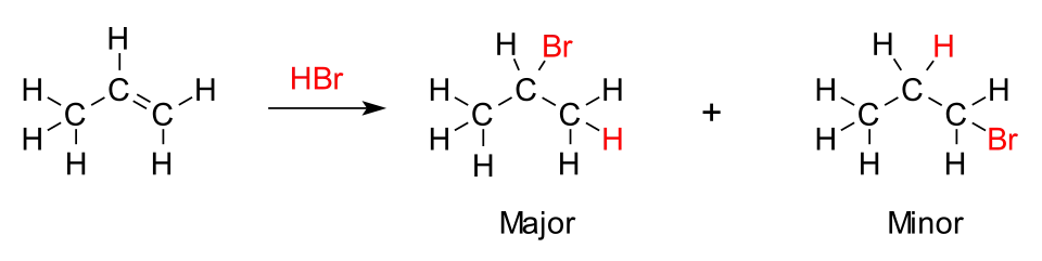 Outra reação que tem uma regiosseletividade muito estudada é a reação de adição, a qual segue a regra de Markovnikov: