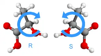 Os descritores R/S permitem indicar em um composto orgânico a configuração (a disposição espacial dos substituintes) de um carbono ou centro quiral, estereocentro ou centro estereogênico, que é o caso de um átomo de carbono com quatro substituintes diferentes.