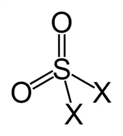 Ocorre em compostos como o cloreto de sulfuril (SO2Cl2) e fluoreto de sulfuril (SO2F2).