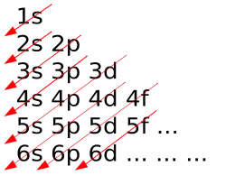 Ordem aproximada em que as camadas e subcamadas são arranjadas pelo nível de energia de acordo com o princípio de Aufbau