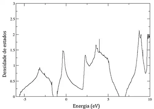 Além da análise de propriedades mecânicas, é possível utilizar a DFT para prever propriedades importantes como a estrutura de bandas, que tem permitido estudos nas áreas de materiais ferroelétricos, semicondutores magnéticos e eletroquímica. Na pesquisa de baterias recarregáveis, como as de lítio, a compreensão da relação entre as propriedades desses materiais em nanoescala e sua estrutura de bandas possibilita novos avanços na pesquisa de baterias de alta performance[19]. É possível gerar a estrutura de bandas e densidade de estados no processo de pós-processamento, a partir de informações obtidas pelos cálculos de DFT.