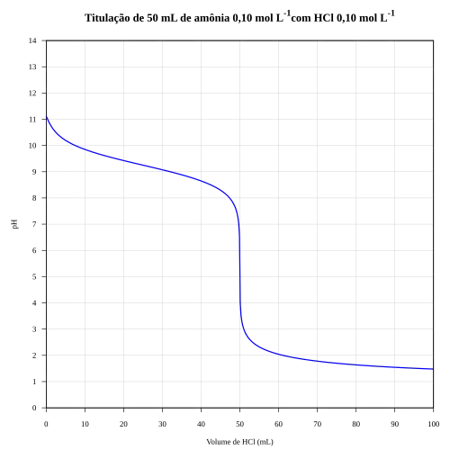 Um exemplo deste tipo de titulação é a titulação do hidróxido de amôneo com o ácido clorídrico: