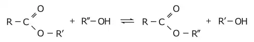 Transesterificação é uma reação química entre um éster (RCOOR’) e um álcool (R’’OH) da qual resulta um novo éster (RCOOR’’) e um novo álcool (R’OH).