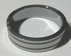A sua densidade, semelhante à do ouro, permite que o tungstênio seja usado em joalheria como uma alternativa ao ouro ou à platina.[3][39] O tungstênio metálico é mais duro que as ligas de ouro (embora não tão duro como o carbeto de tungstênio), e é hipoalergênico, o que o torna útil para a fabricação de anéis resistentes aos riscos, especialmente em desenhos com acabamento escovado.[40]