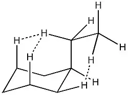 Atribui-se esta diferença de energia à repulsão no espaço entre os grupos quando o radical está na posição equatorial.