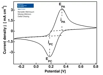 - ↑ Elgrishi, Noémie; Rountree, Kelley J.; McCarthy, Brian D.; Rountree, Eric S.; Eisenhart, Thomas T.; Dempsey, Jillian L. (3 de novembro de 2017). «A Practical Beginner's Guide to Cyclic Voltammetry». Journal of Chemical Education. 95 (2). 197 páginas. Bibcode:2018JChEd..95..197E. doi:10.1021/acs.jchemed.7b00361