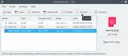- Ark trabalha de forma integrada com o navegador de arquivos Konqueror, usando a tecnologia KPart, se o pluging apropriado do kdeaddons estiver instalado.